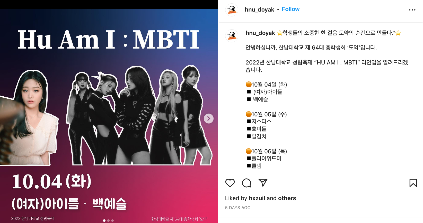 10월에 예정된 대학교 축제들 일정과 아티스트 라인업을 정리해보았습니다.